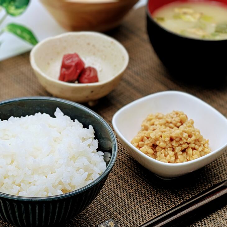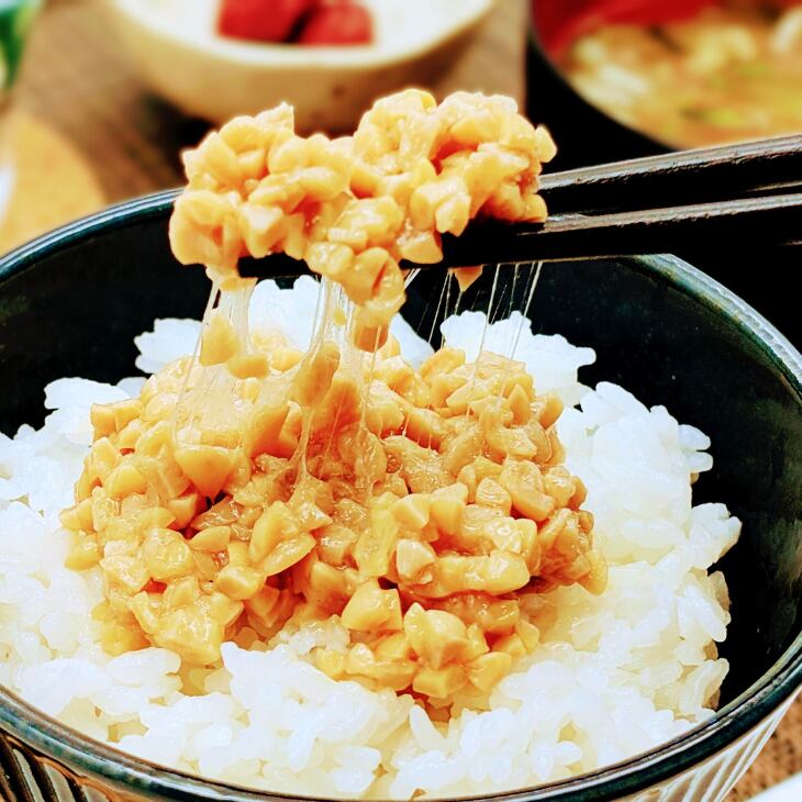 岩手県産の南部白目、リュウホウなどの大豆を製造直前に割りたてのものを使用し、超細やかな挽割り大豆をじっくり低圧にてまろやかに蒸し上げました。また超熟醗酵製法により納豆本来のねばりと風味豊かな納豆をご賞味ください。