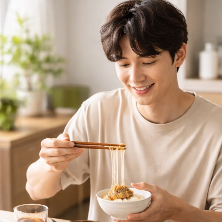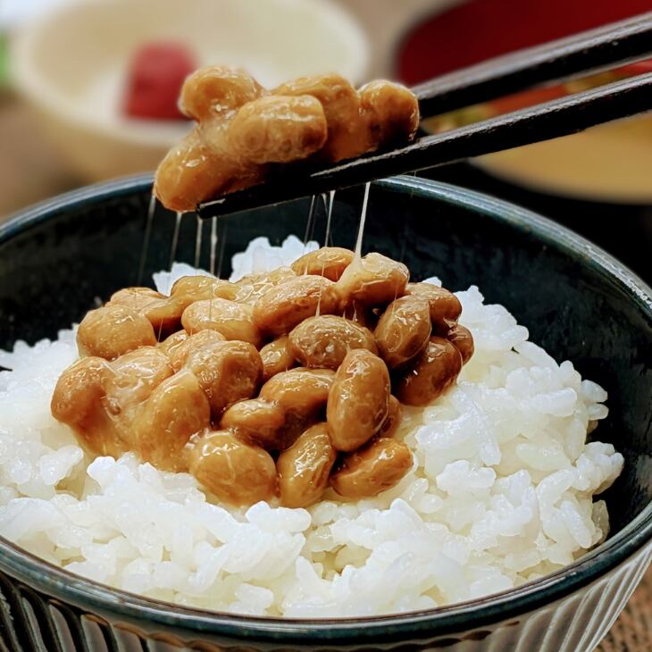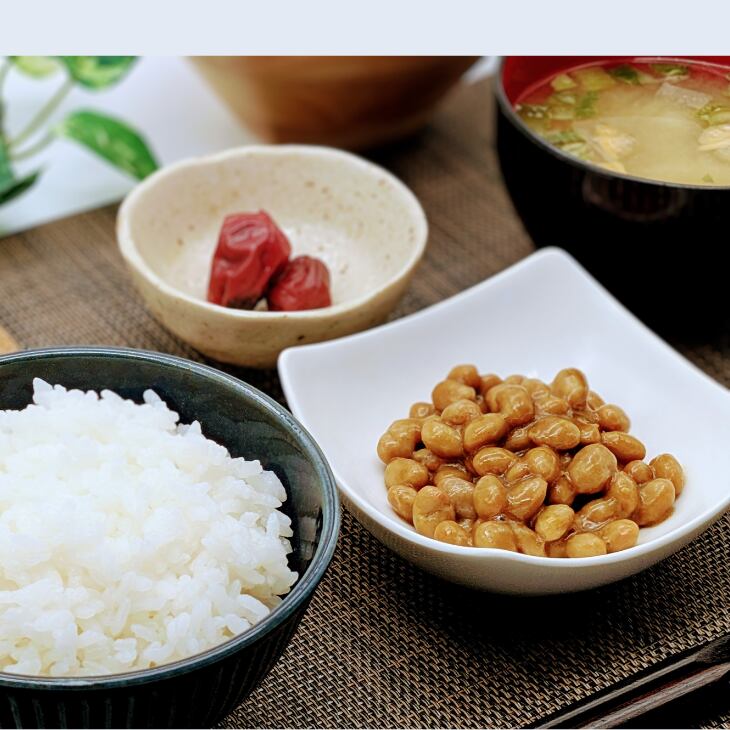 岩手県産の希少品種であるすずほのか小粒大豆を使用し、じっくり低圧にて蒸し上げてもっちりやわらかに仕上げました。また超熟醗酵製法により納豆本来のねばりと風味豊かな納豆をご賞味ください。